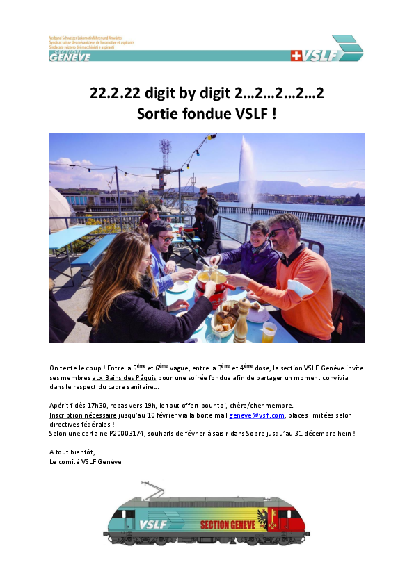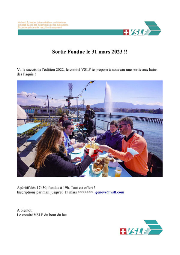 En 2022, la section de Genève a proposé une soirée fondue à ses membres.
