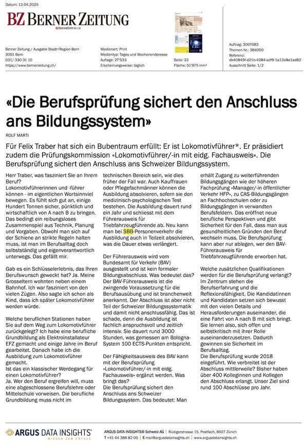 Mit der eidgenössischen Berufsprüfung wird auch die Reflexionsfähigkeit des Lokpersonals gefördert, was sich auf die Sicherheit und Qualität gewinnbringend auswirkt.